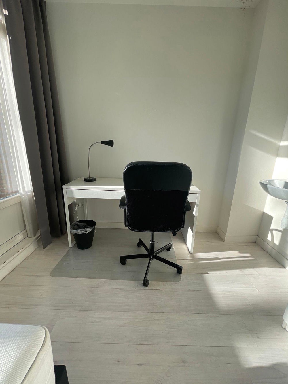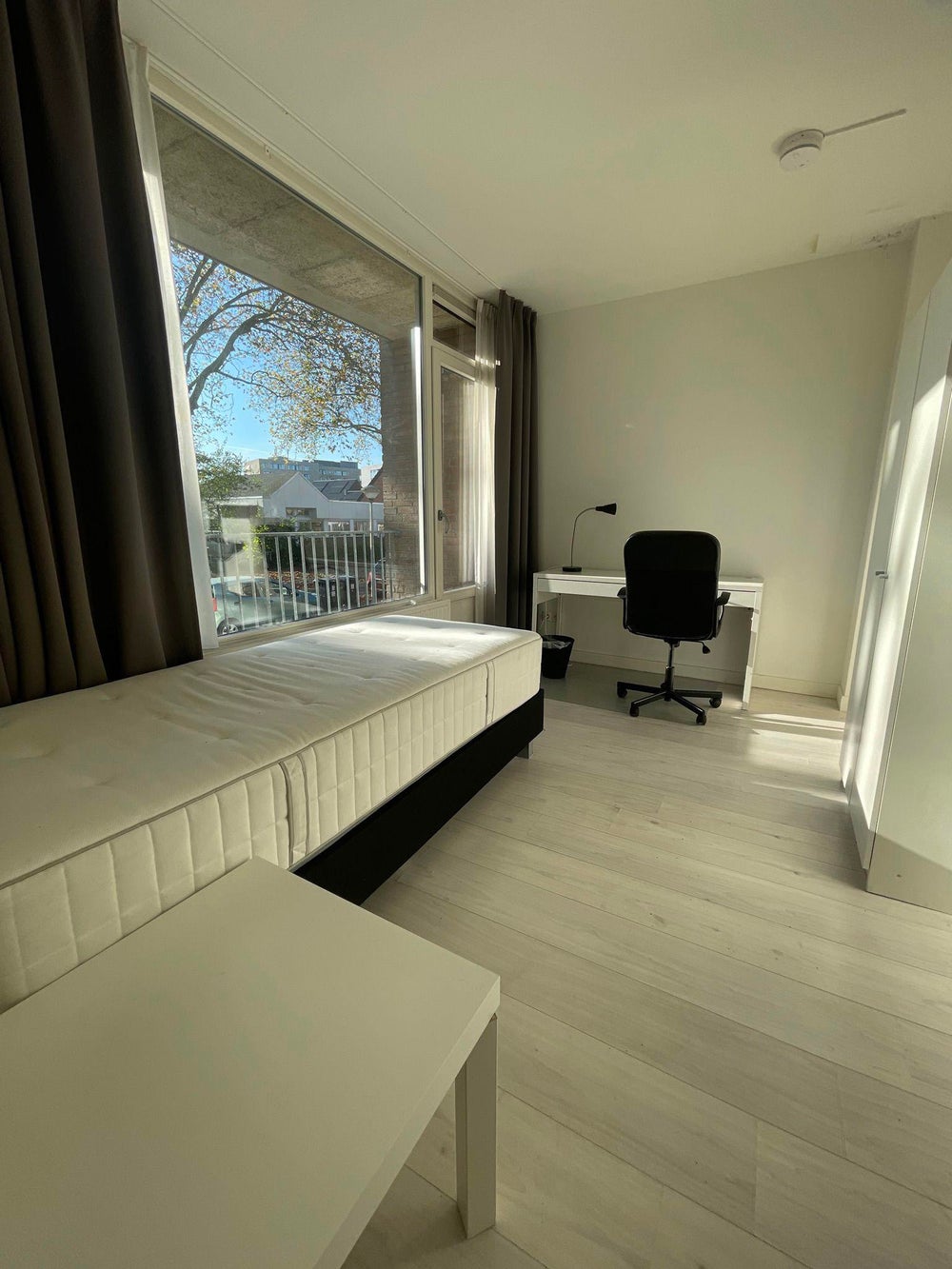Fully furnished studentroom with in a house in Eindhoven with shared facilities. The room is located on the ground floor at the frontside of the house and has its own sink and balcony. Furthermore, this house contains 1 bathroom, 2 toilets and 1 kitchen area, which are shared with 5 other housemates.