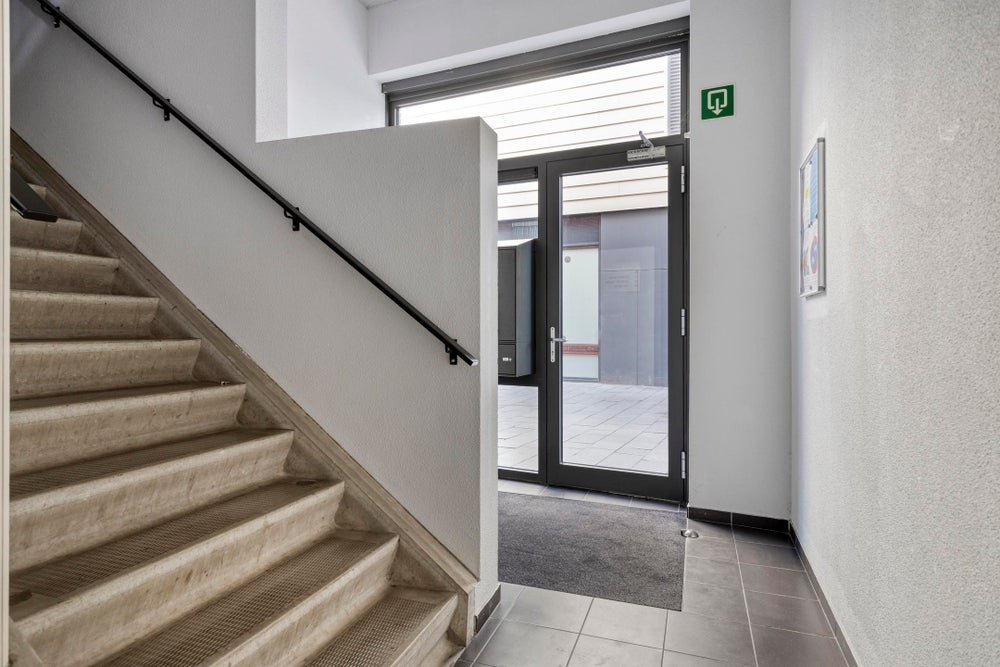 Entree met brievenbussen, bellenplateau en intercom-videofoon installatie. Afgesloten hal met lift en trapopgang naar de appartementen.