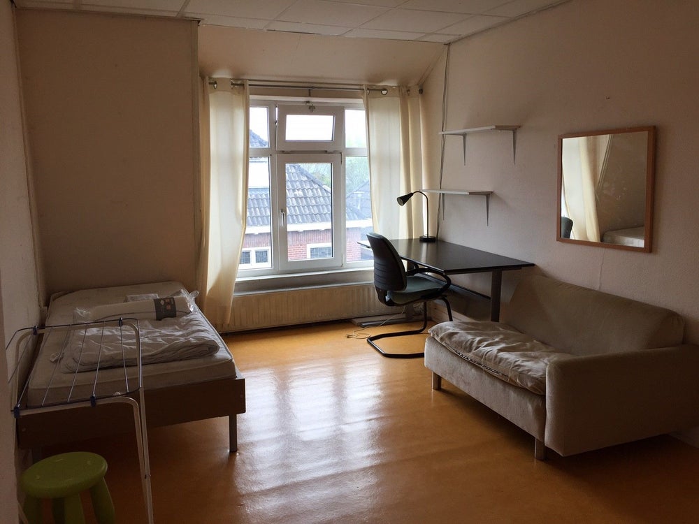 Gemeubileerde kamer in een huis in Eindhoven met gedeelde voorzieningen. De keuken, badkamer en het toilet worden gedeeld met 4 andere bewoners.