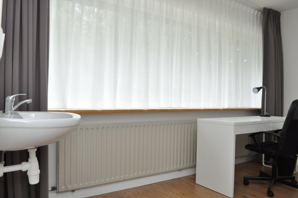 Gemeubileerde kamer, in een huis in Eindhoven met gedeelde faciliteiten. De kamer beschikt over een eigen wastafel.