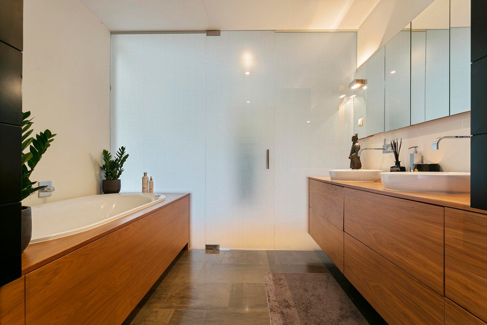 - Luxe open badkamer met ligbad, inloopdouche en dubbele wastafel