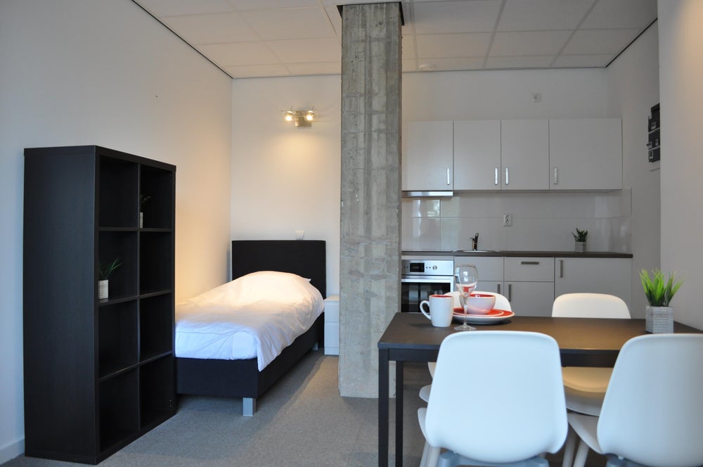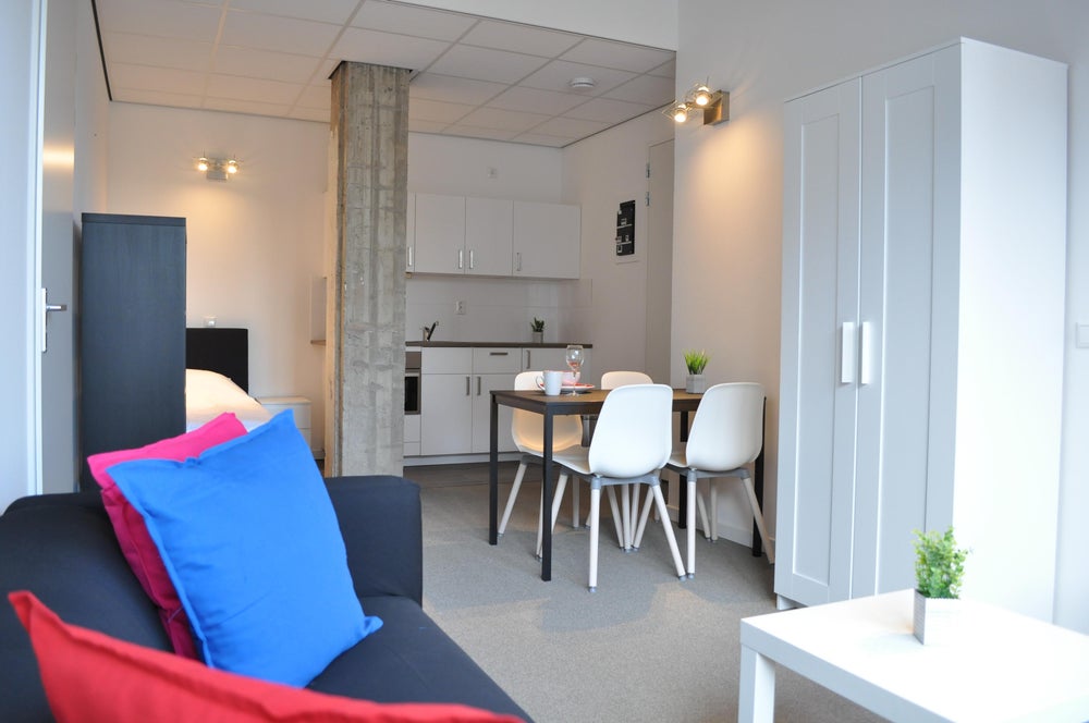 Smaakvol gemeubileerde studio met industriële look gelegen in het centrum van Eindhoven, op loopafstand van het Stratumseind. De studio heeft zijn eigen voorzieningen zoals keuken, badkamer met douche, toilet en wastafel.